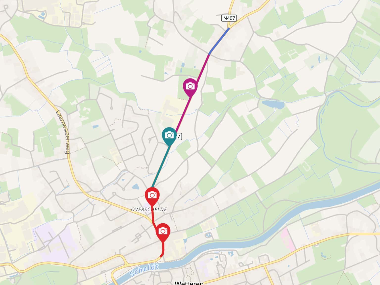 N407 Wetteren: situeringskaart met projectzones