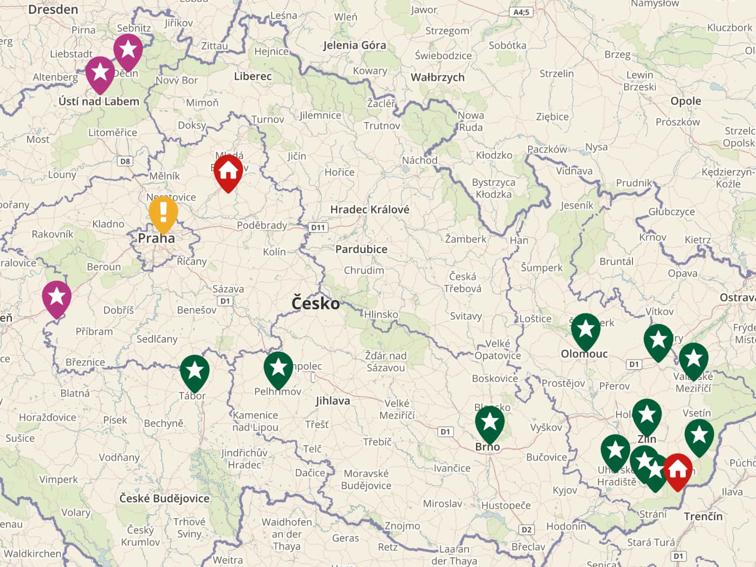 Mapa Oddílů BOČR