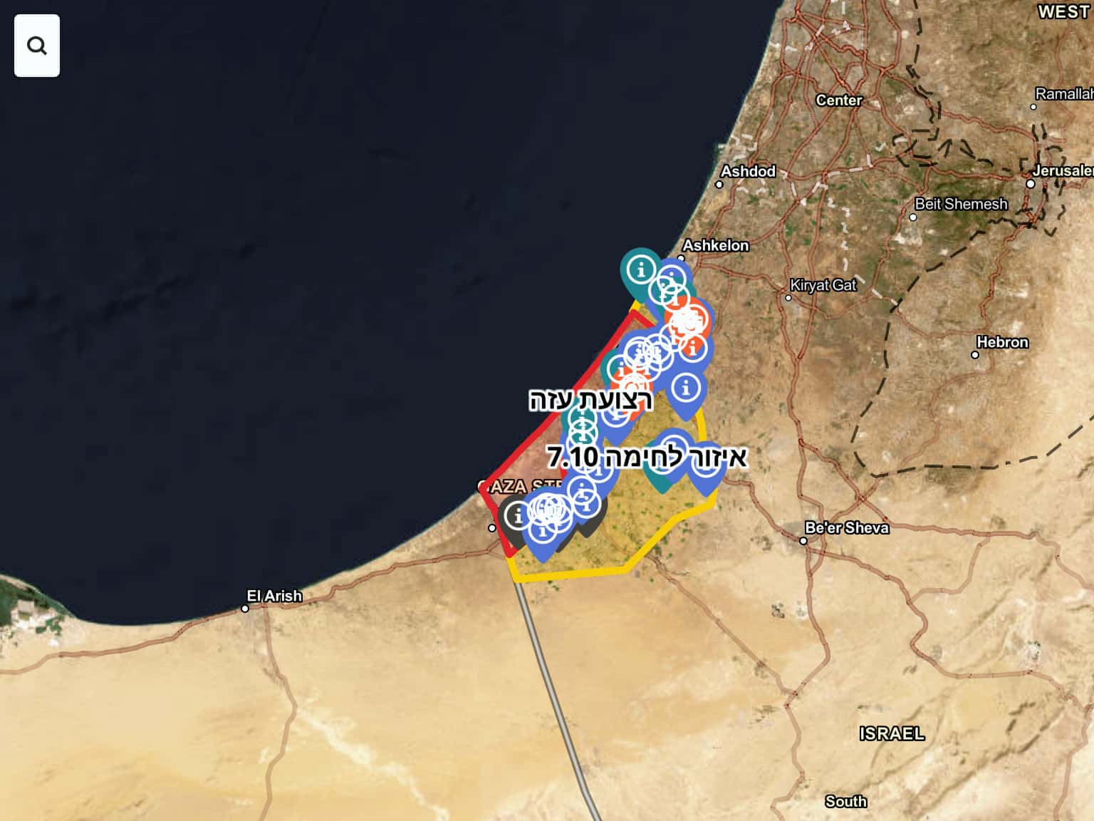 מפת אירועי הטבח 7.10.23