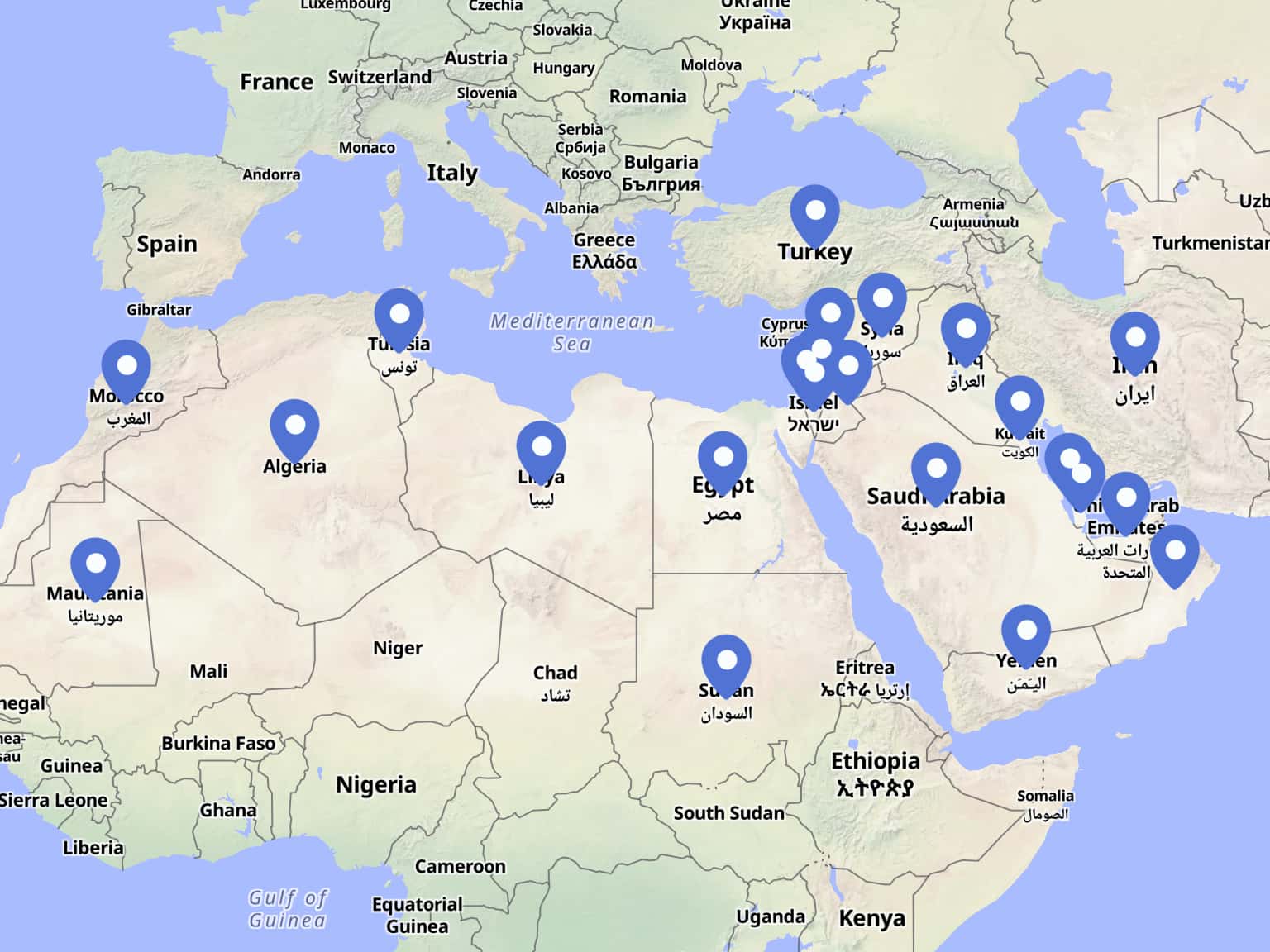 Unique Activities by Country: SWANA Region