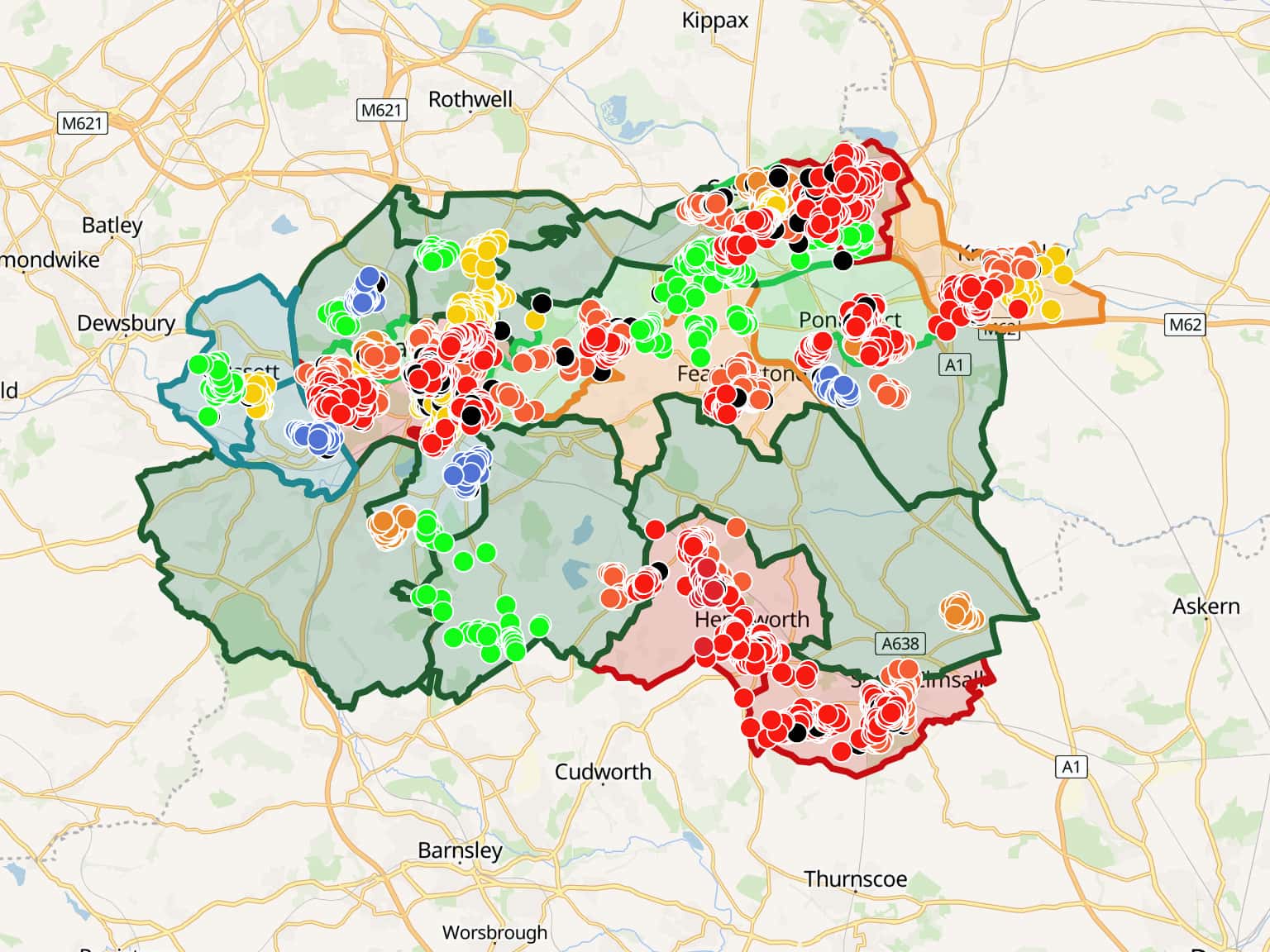 Ward Map with Postcodes for Worst LSOA's