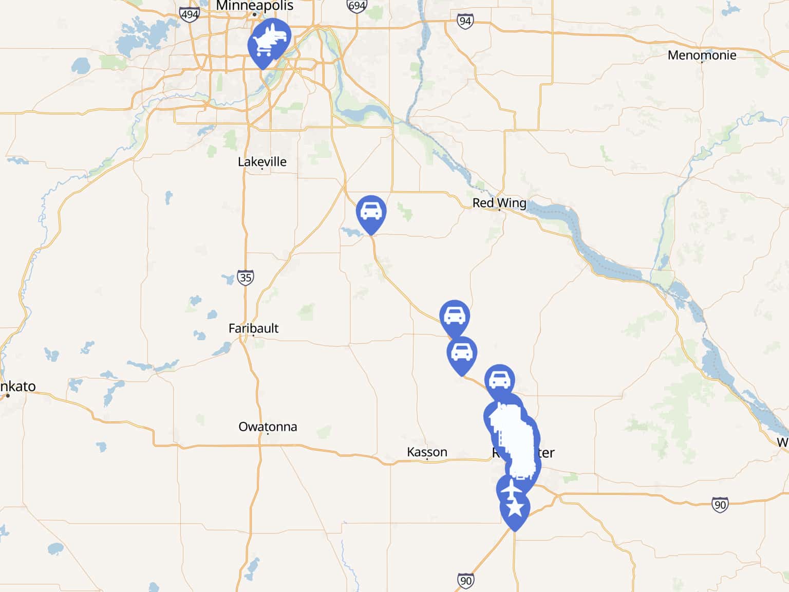 Rochester Shuttle Service MSP Pickup and Drop off locations