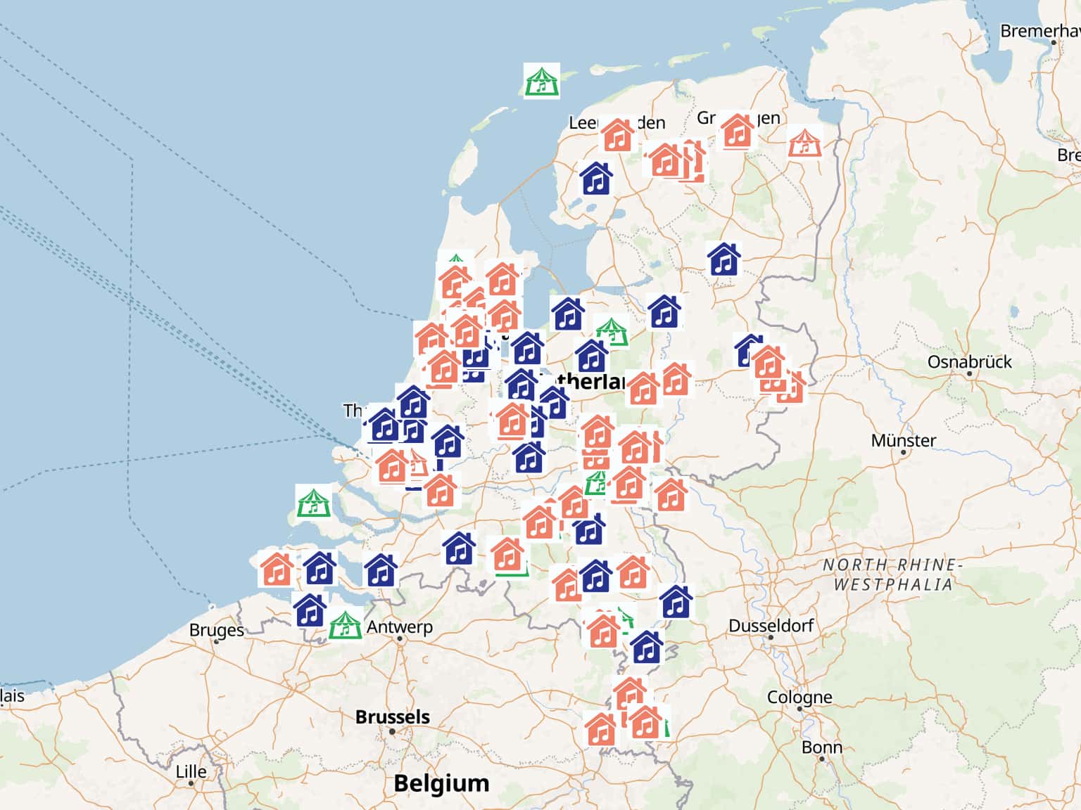 Programmering VNPF podia en festivals in kaart