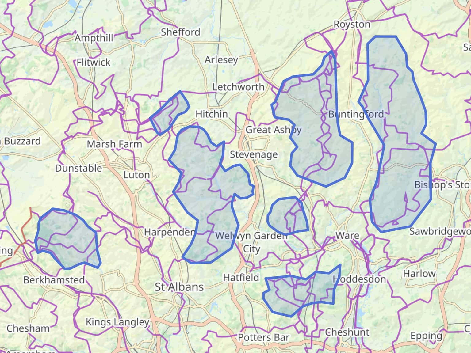 Quieter areas of the Hertfordshire countryside