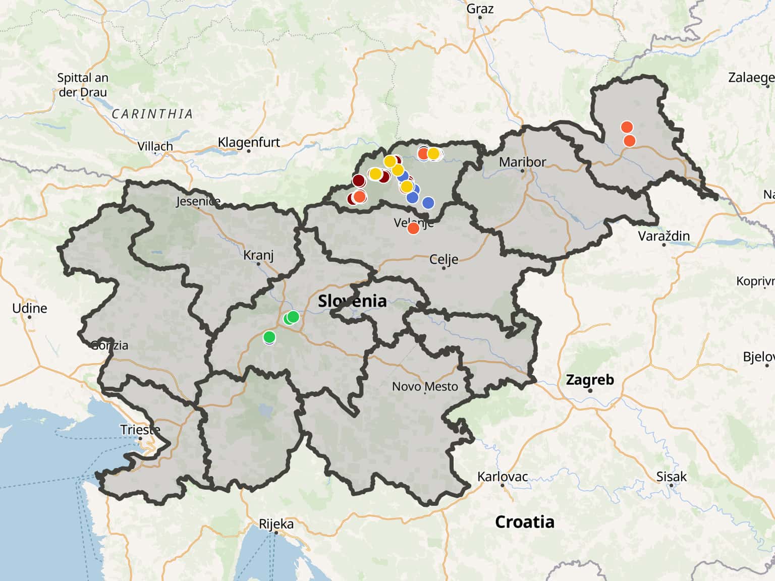 zemljevid izvajalcev koroška