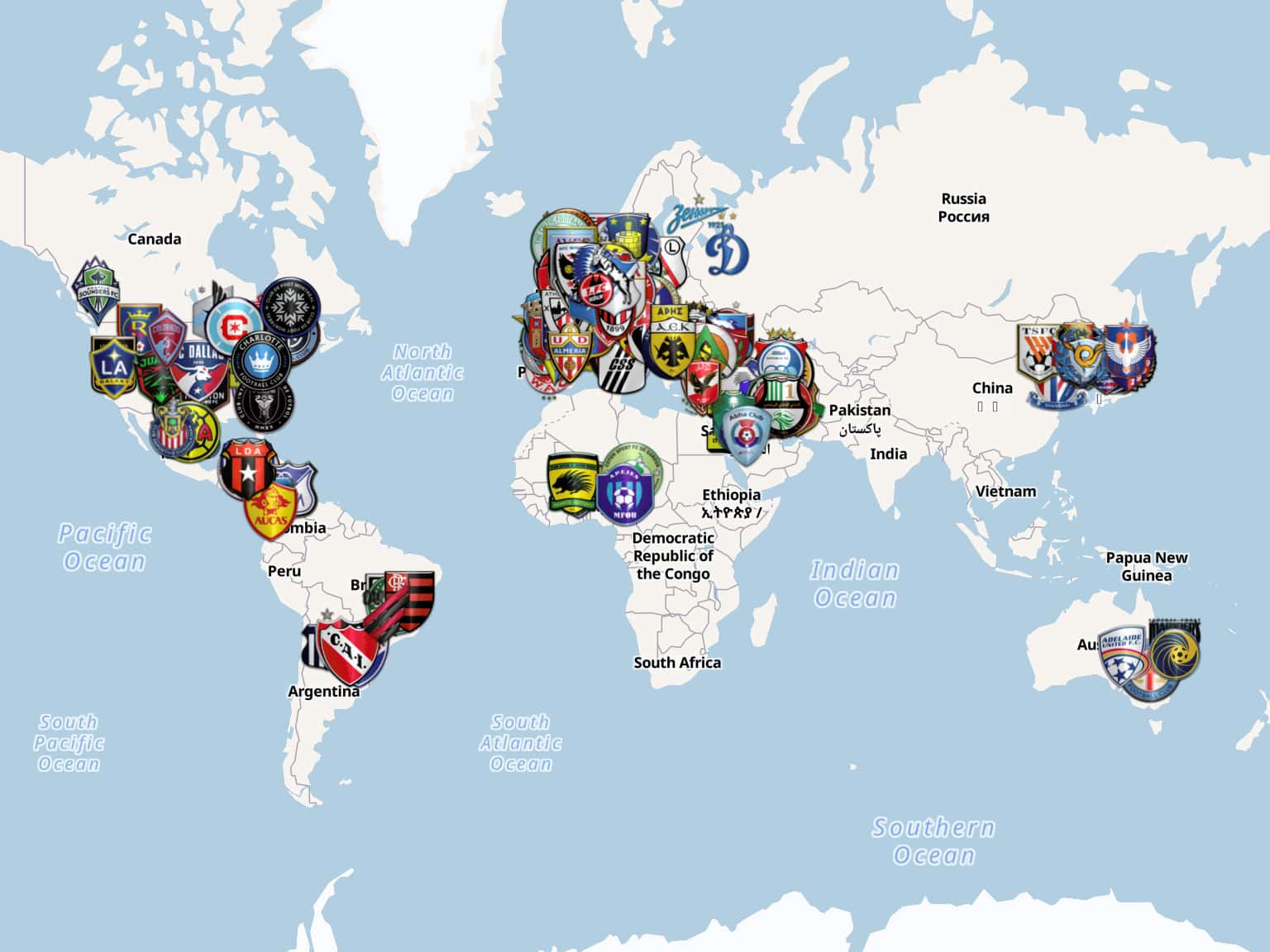 Clubs with players at the World Cup