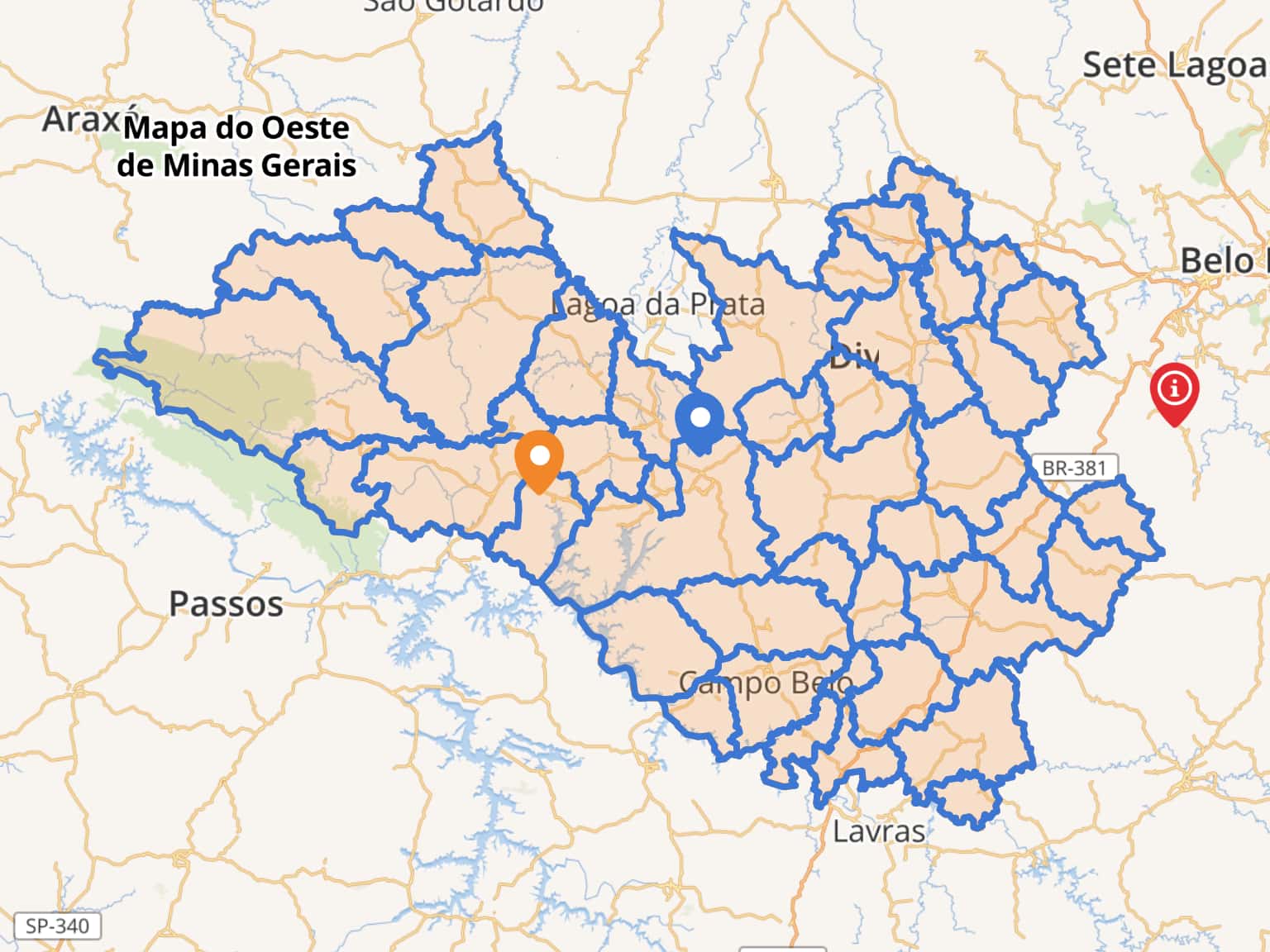 Mapa do Oeste de Minas Gerais