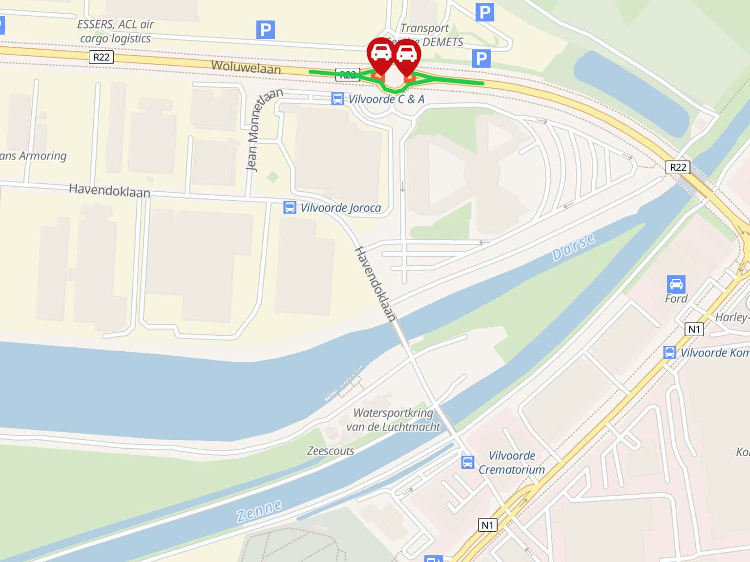 Heraanleg fietspaden aan rotonde Woluwelaan (R22) met Jean Monnetlaan in Cargovil - FASE 1
