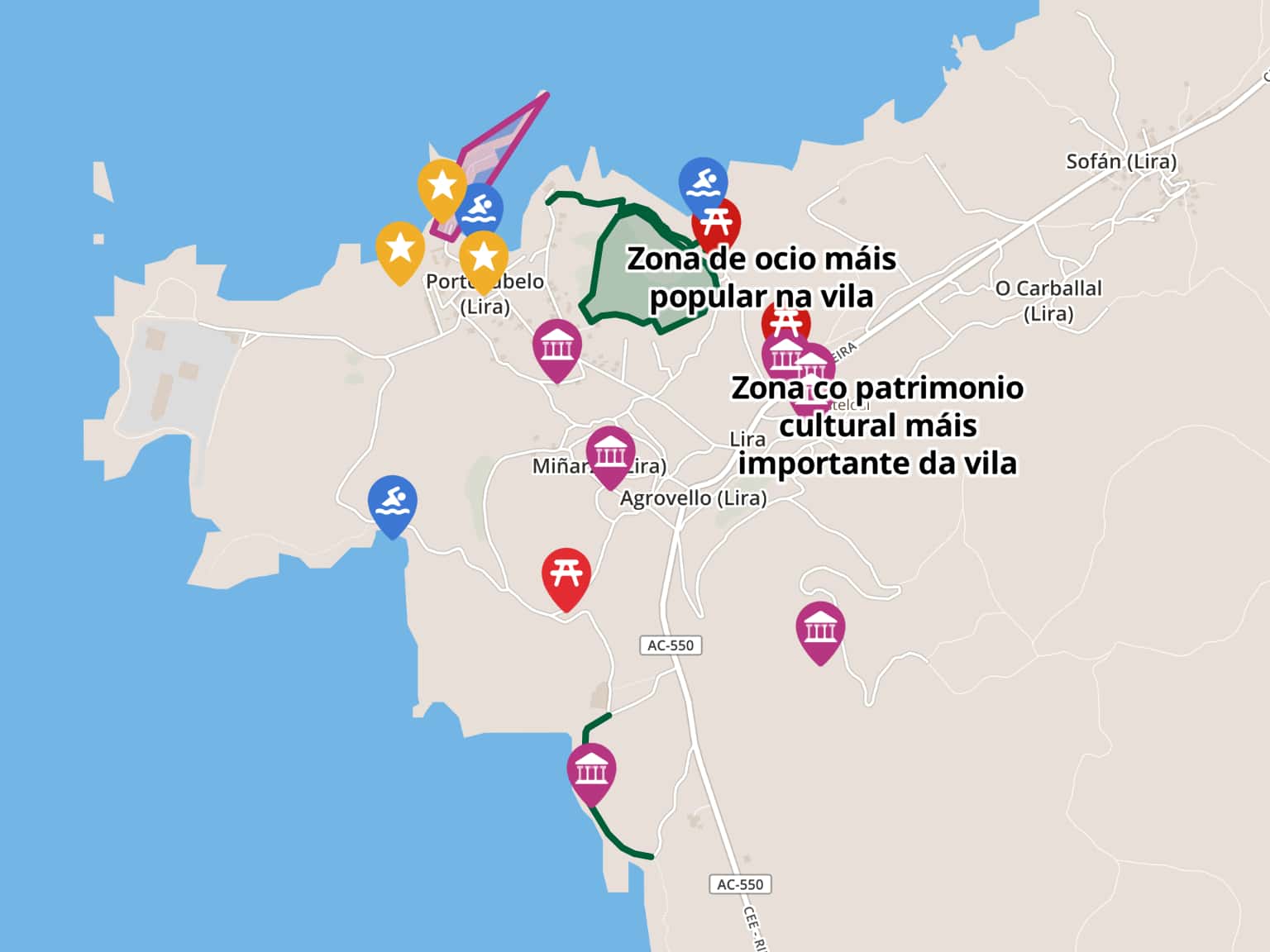 Puntos de interese turístico en Lira (A Coruña)